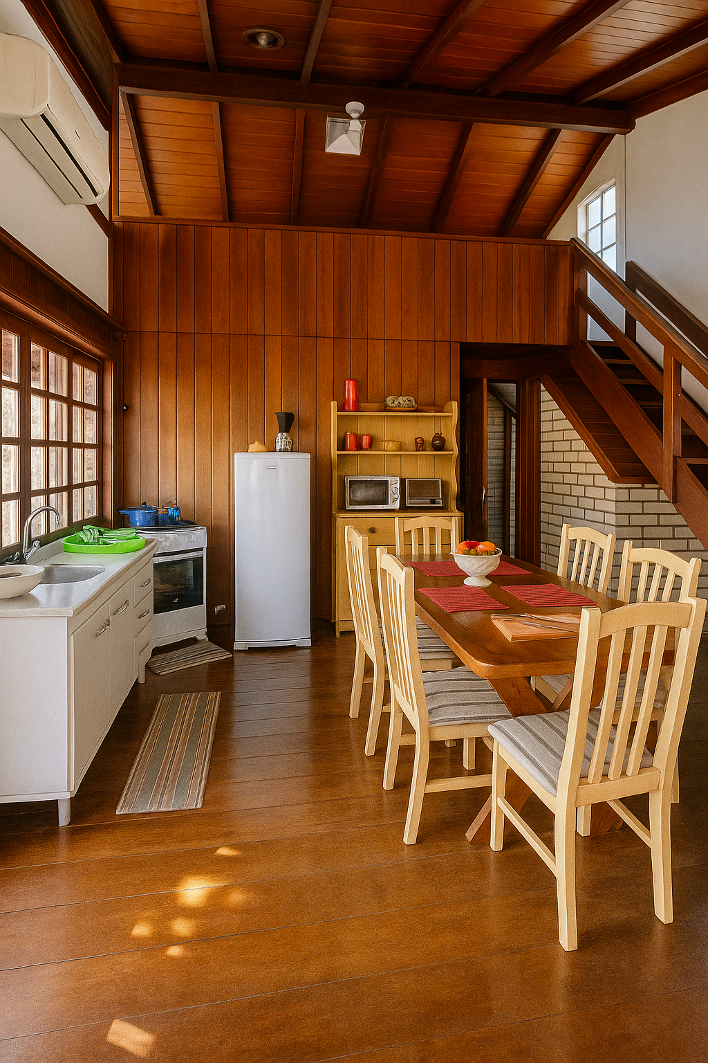 - Cozinha equipada com utensílios essenciais (fogão e geladeira)